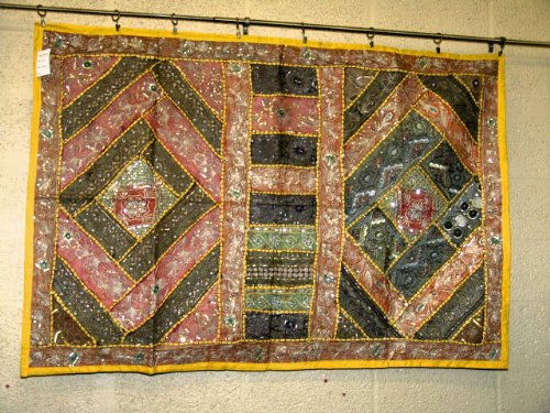 Cheap Christ-mas Gift- Indian Yellow Border with Excellent Sequin Embroidored Work Tapestry Throw Wall Hanging 60 X 40 Inches Free Shipping Review