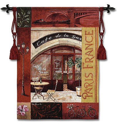Paris France Tapestry Wallhanging Comes With Wall Hanging Rod and Tassels Overview