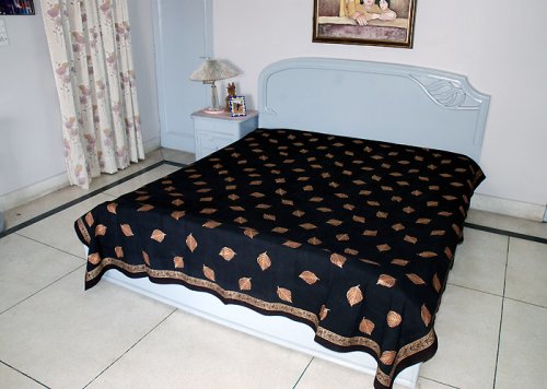 At the end of a busy day you seek to lie on a bed that looks beautiful and feels comfortable. Here we present just the right blend of all that you are looking for - comfort, beauty, durability and affordability. Fine quality cotton fabric make this bedspread durable and comfortable. Crafted from pure cotton using Gold Print, Leaf design This bed spread will definitely capture the heart of couples.