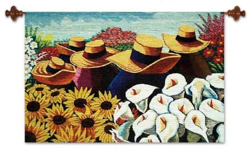 NOVICA, in association with National Geographic, offers thousands of limited edition and one-of-a-kind gifts, jewelry, and home decor treasures handmade by master artists and artisans throughout the world. Shaded by wide-brimmed hats, women harvest brilliant bouquets of sunflowers and arum blossoms in the fertile Peruvian sierra. Walter Paucar Velarde portrays this colorful scene in a beautiful tapestry woven by hand. Carefully placing each weft (horizontal) thread individually, he creates beautiful portraits of Andean charm. Titled "Recolectando Flores" in Spanish. Artisan Info: "I was born in August of 1956 in a small town in the Central Andes of Peru. I come from a long line of artisans. My father, Santiago Paucar Amara, was a well-known weaver who won several national prizes. Many of his finest works ended up in Europe, in such countries as Germany, Italy, and France. I began working with my dad at the age of fourteen and, at the age of seventeen, I headed off to the University of Cerro de Pasco. Unfortunately, due to financial reasons, I was able to study for only two years. I thus returned home to dedicate myself full-time to the creation of tapestries. My wife also dedicates her time to weaving and, between the two of us, we transmit the beauty and tradition of our hometown to the rest of the world. We are both very happy to be featured on Novica, and are hopeful that our works will be known across the world so that everyone will appreciate the greatness of Peruvian art.